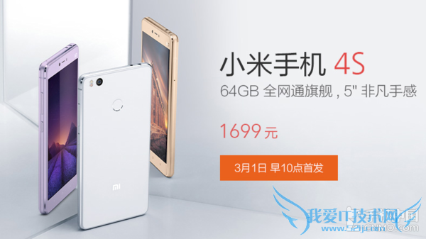 另外,性价比极高的小米4S今日上午10点也将在小米官网和苏宁易购开抢,64GB容量售价为1699元。小米4S采用5英寸全高清屏,双面玻璃+金属边框设计,搭载骁龙808六核处理器,内置3GB运存,并配备指纹识别和Type-C接口,属于时下主流配置。遗憾的是,该机今日也仅有金色版,备受关注的淡紫色版并未列出!