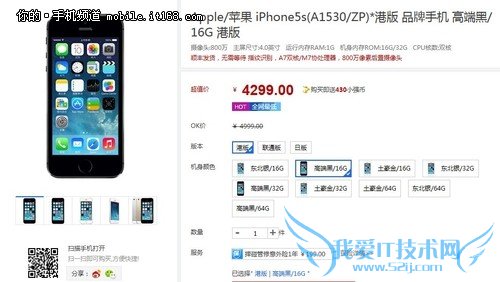相关链接:相比官网便宜近1000元 港版iPhone 5s最低仅4299元【点击直达】