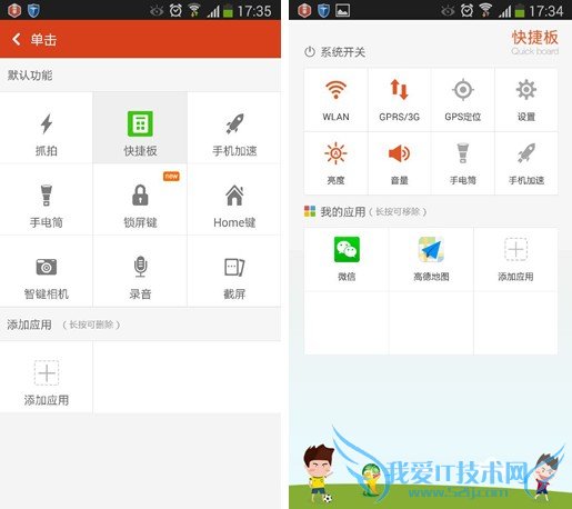 360智键的这个功能很适合手机中有海量app的手机玩家们,不用在众多app中翻来翻去地寻找了。可自定义6个常用app,也较为符合智能手机用户的使用习惯。