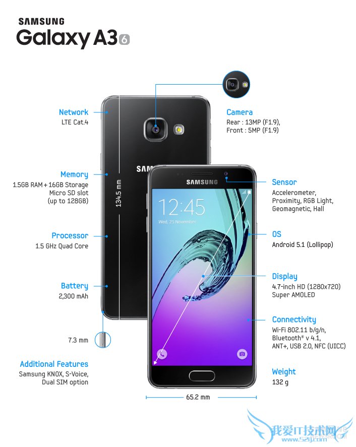 新版A3采用4.7英寸720p显示屏,搭载1.5GHz Exynos 7580处理器,内置1.5GB内存;前置500万像素+后置1300万像素摄像头,电池容量为2300mAh。