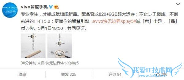 vivo Xplay5将于3月1日发布