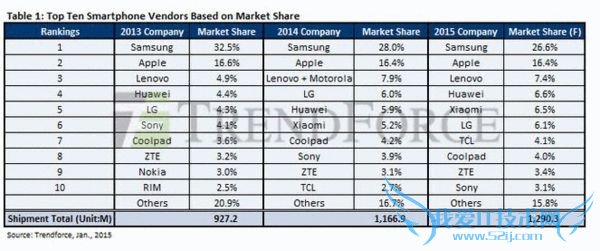 ×ۺϱȽÏIDCµÈ¶à¼ÒÊе÷»ú¹¹·¢²¼µÄ2013Äê¡¢2014ÄêÖÇÄÜÊÖ»úÆ·ÅÆ³ö»õÁ¿Êý¾Ý£¬³ýÁ˺ϲ¢ÁËĦÍÐÂÞÀµÄÁªÏëÖ®Í⣬ֻÓÐСÃס¢»ªÎªÁ½¼ÒÆ·ÅÆ±£³ÖÁËÊг¡·Ý¶îÓлú¸ßÔö³¤£¬ÖÐÐË¿áÅÉÁ½¼Ò¹ýÈ¥ÒÀÀµÔËÓªÉÌÇþµÀµÄÆ·ÅÆµÄÔö³¤²¢²»Ã÷ÏÔ¡£¸ù¾ÝÊе÷»ú¹¹TrendforceµÄÒ»·ÝÔ¤²â±¨¸æ£¬ÔÚ2015ÄêÖÐÐË¡¢ÁªÏëºÍ¿áÅɵÄÊг¡·Ý¶î½«¼ÌÐøÎ®ÃÒ£¬¶øÐ¡Ã׺ͻªÎª½«Ð¡·ùÔö³¤¡£