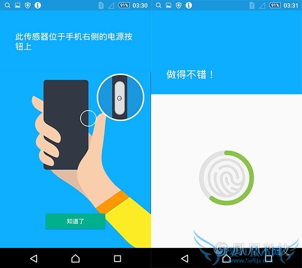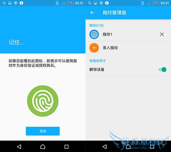 当然相比过去的索尼TimeScape来说,索尼Z5尊享版最大的变化是加入了指纹识别系统,这也是索尼机型首次加入指纹识别功能,索尼Z5尊享版最大的不同在于它将电源键和指纹识别融合在了一起,并且放在了机身侧面。在录入指纹时可能是因为面积比较小的缘故,基本上按了10次左右,在实际体验环节中手正常持握手机然后用拇指按下电源键,然后完成了指纹识别进入系统的功能,如果录入的是大拇指的指纹的话确实还是比较方便的,但是其他手指就比较尴尬了。在速度方面,索尼Z5尊享版的解锁速度中规中矩,从按下电源键到进入系统界面用了不到1秒的时间,不过在识别率上还是非常准确的,我尝试了10次均成功解锁。但有一点,索尼Z5尊享版的指纹识别目前只能应用解锁,其他接口还暂未开放。