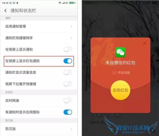 一键抢红包功能支持锁屏和静音状态下提醒,前提是用户已在【通知和状态栏】中开启了【在锁屏上显示红包通知】选项。用户在收到红包通知后,无需解锁即可直接进入领取红包的界面。这样人性化的设计,非常有利于用户在外出或有朋友来访时争抢红包。