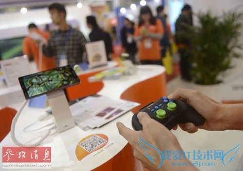 资料图:工作人员演示一款面向智能手机游戏用户打造的游戏手柄。新华社记者韩传号摄