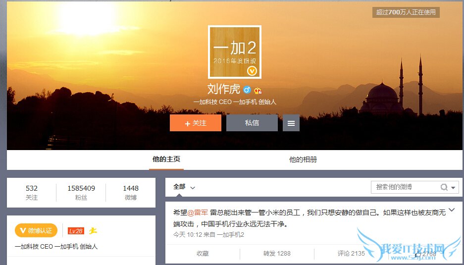 微博发出后引发了网友的强烈不满,并在微博上掀起骂战。对此,一向沉默的一加CEO刘作虎也在微博上隔空喊话雷军,”希望能出来管一管小米的员工,如果这样也被友商无端攻击,中国手机行业永远无法干净。”