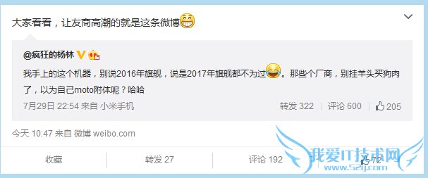 据悉,7月28号一加手机2发布之后,小米手机上太空项目策划人@疯狂的杨林在微博上称,“我手上的这个机器,别说2016年旗舰,说是2017年旗舰都不为过。那些个厂商,别挂羊头买狗肉了,以为自己moto附体呢?哈哈。”这里指的厂商正暗示是一加。