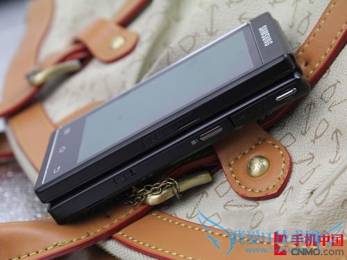 为了更好节约机身的空间,三星 W999的接口安排得很紧凑。microUSB数据口可以同时充当耳机插孔。除了电源键,我们在三星W999的右侧面还看到了一颗比较特殊的滑动式按键,这颗按键的作用是锁定/开启网络,以帮助用户更好控制网络的开关,是个很实用也很新鲜的物理按键。