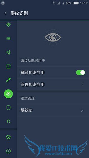 虽然nubia 布拉格S不支持指纹识别,但是它却加入了眼纹识别功能,手机通过前置摄像头扫描用户眼球静脉纹路进而识别用户身份,与前作nubia Z9 mini精英版相似,颇为炫酷,而体验还存在提升空间。在完成“眼纹识别”设置之后,用户可以通过眼纹加密手机应用,比如为微信、QQ、陌陌,亦或是电子邮件、联系人、信息等私密应用加密,在手机外借的过程中也不会将个人隐私外泄。