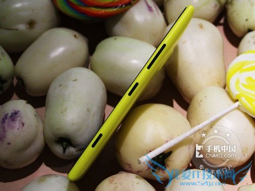 在外观方面,Lumia 1520延续了Lumia系列经典造型,采用聚碳酸酯一体化设计,162.8×85.4×8.7mm的尺寸配上209g的重量,在巨屏手机界堪称轻薄。该机共有黑、白、黄、红四款配色,其中,红色采用了亮面钢琴漆,而另外三种颜色则采用类肤质表面,手感舒适细腻。