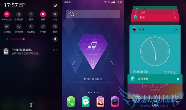 MEIOS 2.5实际上在图标上的变化不大,不过风格有些小小的转变,还有解锁界面以及待机界面等等,看起来都比以往机型变得大气了一些,并且系统预置的应用都采用了沉浸式的设计,这也确实迎合了Android 5.1本身的特点,看起来视觉效果也很不错,而且工具类的应用很齐全,比如像是骚扰拦截、自启动助手还有像是权限管家等等这些应用,实用性都是比较高的。