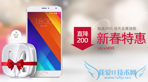 去年6月底,魅族发布MX系列最新机型--MX5,这款快充金属旗舰依然延续了上一代错位2000元档的策略,定价1799元起,在同档机型中颇具竞争力。而在这次的节前活动中,魅族在此前已经降价100元的基础上再直降200元,最终售价1499元起,并且还有各种套餐可选,性价比再一次提升。