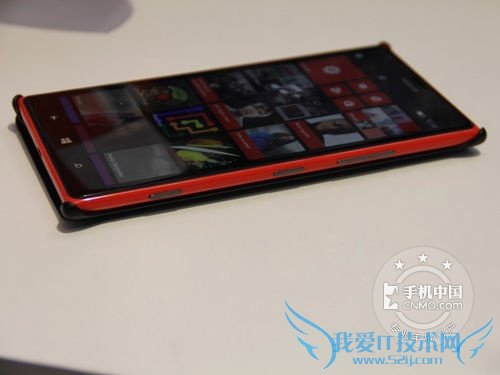 在外观方面,Lumia 1520延续了Lumia系列经典造型,采用聚碳酸酯一体化设计,162.8×85.4×8.7mm的尺寸配上209g的重量,在巨屏手机界堪称轻薄。该机共有黑、白、黄、红四款配色,其中,红色采用了亮面钢琴漆,而另外三种颜色则采用类肤质表面,手感舒适细腻。