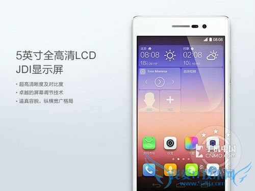 华为Ascend P7在机身上依旧采用了超薄机身设计,该机配备了5.0英寸的大屏设计,分辨率为1920x1080像素,显示效果不错。在拍照方面该机也是采用了1300像素的后置镜头以及800万像素的前置镜头,拍照实力不俗。在处理器上该机采用了华为的海思Kirin 910T处理器,以及2GBRAM+16GB ROM内存组合,性能十分强劲。同时该机还有2500mAh的不可拆卸电池。