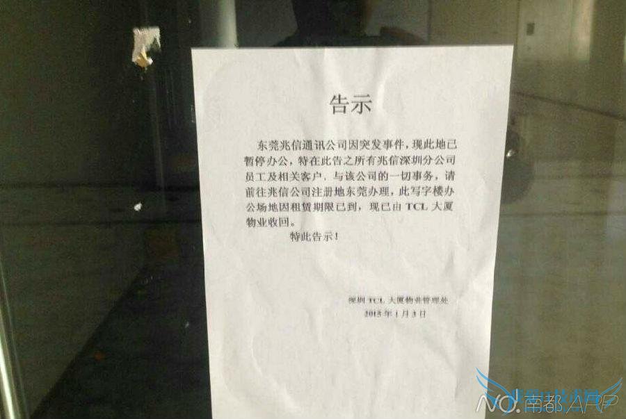 兆信工厂位于深圳的办公室已大门紧锁。图片来源于网络。