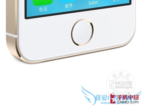 另外,5S机身正面比较明显的部分在于Home键的部位,去掉了中间的小方块,整个样子非常平整。同时Home键也是加入了指纹识别功能,材质也采用了坚固的蓝宝石设计。Home键的外侧拥有一圈感应光环,可以用来提示指纹识别的过程。