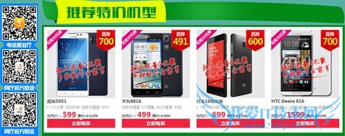 据悉,活动期间酷派5951直降700,仅售599元;华为C8816直降491,仅售499元;红米1S电信版直降600,仅售699元;HTC Desire 816直降700,仅售1599元;华为荣耀3C直降409,仅售890元;苹果iPhone4S直降689,仅售1999元;小米3直降600,仅售1399元;购买以上机型办理超大流量G无霸,最高可想11个月免费打,免费办理副卡,一人付费多人共享。另外三星 galaxy s5/盖世5特价仅售3799元,送套餐基本费的10倍话费;三星Note3 N9009超低价仅售3699元!伙伴们快快行动起来吧!