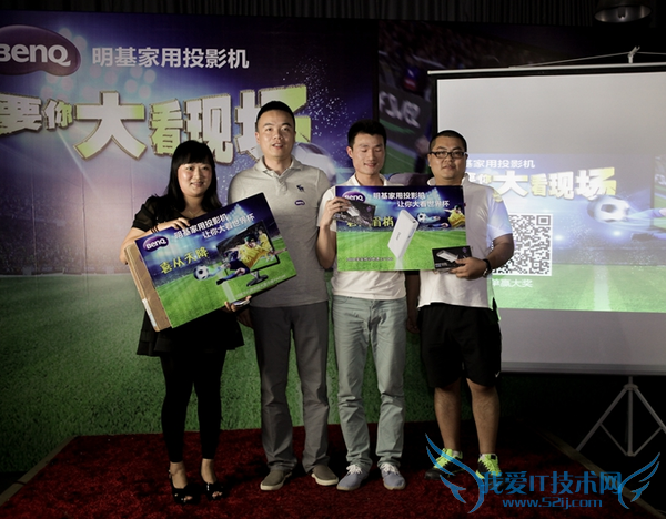 现场既搞笑又专业的有奖问答、往届世界杯视频短片竞猜、足球宝贝大找茬等精彩纷呈的活动环节,将世界杯狂欢夜一步步推向高潮。就在酒吧一角,主办方甚至还特别设立自由娱乐区。其中,在明基W1080ST全高清全3D短焦家用投影机所投射的超大荧幕前,聚集了不少游戏爱好者,另一边的明基GP20超便携LED微型投影机,则循环播放着生动的视频与相册,同样也吸引了不少粉丝。