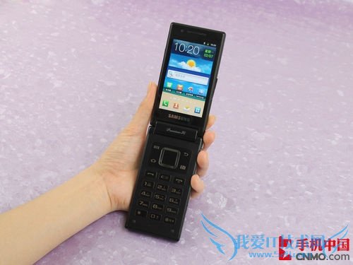 三星W999的机身看上去比较厚重,它采用了传统的大翻盖造型,并且延续了三星W799那样的内外双屏设计,手感非常的瓷实,两块屏幕均是3.5英寸的多点触控屏幕,不仅画面效果炫丽,触控表现也非常不错。