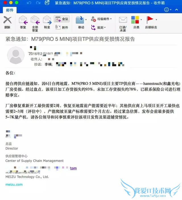今日微博爆光了魅族的一份内部邮件,表示在春节期间的台湾地震中,魅族今年即将发布的新机PRO 5 MINI的触控面板供应商,和鑫光电的厂房受损,损失掉了93%的存货量,以至于产能爬坡至达到量产标准需要2个月的时间,发布会前最多能提供5到7千台量产机。