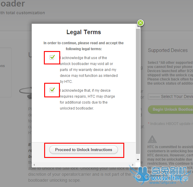 10.再次提示你会失去保修,要解锁的话请两个都打勾并点击【Proceed to Unlock Instructions】。