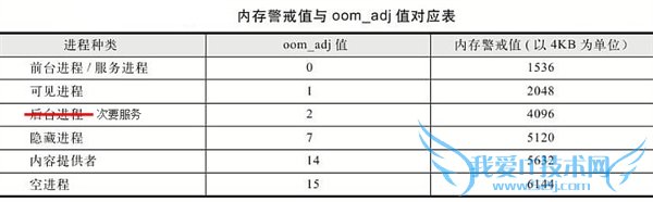空进程(empty):oom_adj=15,有些程序在程序退出后,依然会在进程中驻留一个空进程,这个进程里没有任何数据在运行,作用往往是提高该程序下次的启动速度或者记录程序的一些历史信息,这类进程无疑是要最先被杀掉的。