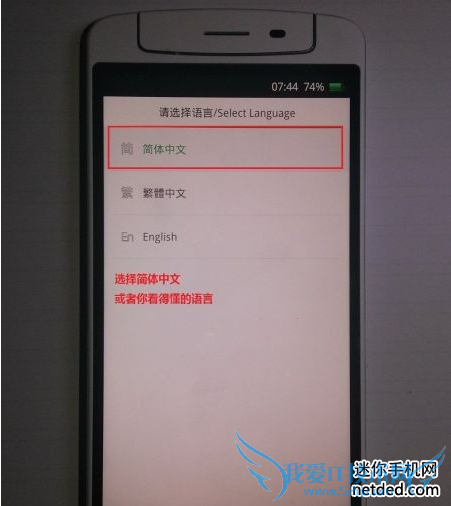 2:首先先彻底的关机,请务必断开手机与电脑或充电器的连接,然后同时按住【电源键】和【音量下键】,直至进入如下的recovery模式选择简体中文
