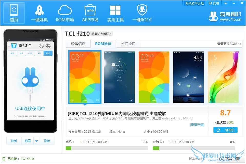 看到这里,你是不是觉得TCL f210一键刷机教程很简单呢,体验更多的TCL f210刷机ROM包,用户可进入奇兔刷机ROM市场下载,还不快来体验刷入各种手机OS的乐趣,希望TCL f210一键刷机教程对大家有所帮助。