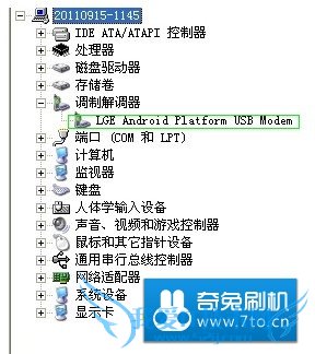 手机关机后,长按音量上键再插入数据线连接电脑,此时不要放开音量键约20秒,直到电脑找到LG的调制解调器(打开我的电脑-属性-硬件-设备管理器查看)