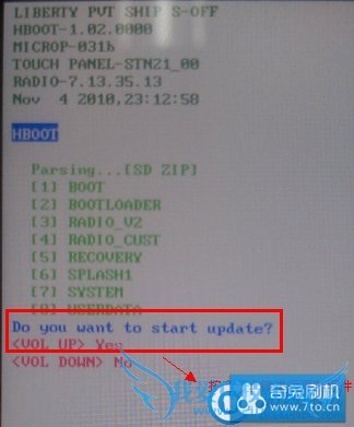 5. 按音量上键开始升级,出现如下图所示后耐心等待完成,中途右边会出现升级进度,中途不能扣电池