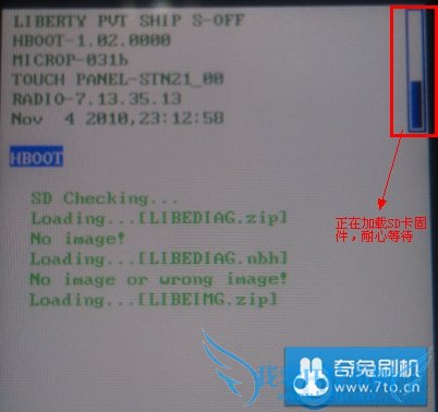 (如果无加载界面,说明手机不在hboot模式或者手机是“木马机”;木马机先软解,谨慎操作,具有一定风险)