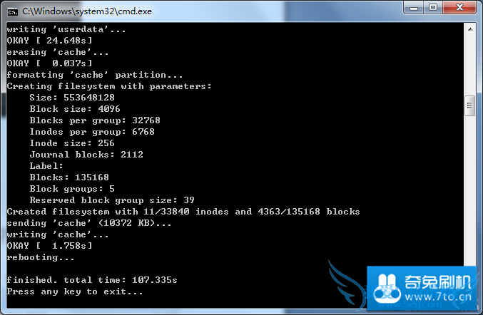 连接后,双击flash-all.bat。系统自动进行官方恢复。如下图所示,恢复官方完毕