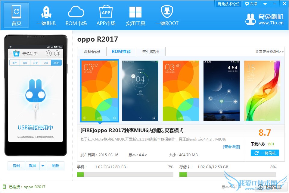 随着智能手机的普及,刷机逐渐变成了热门,网上已经可以找到几款一键刷机软件了,比如:奇兔刷机,支持oppo R2017一键刷机,支持多数热门机型一键刷机的功能。