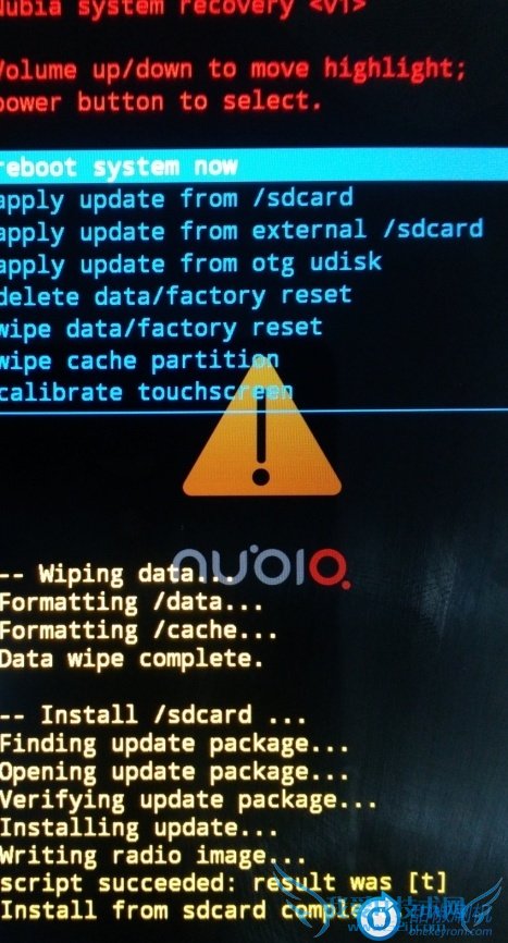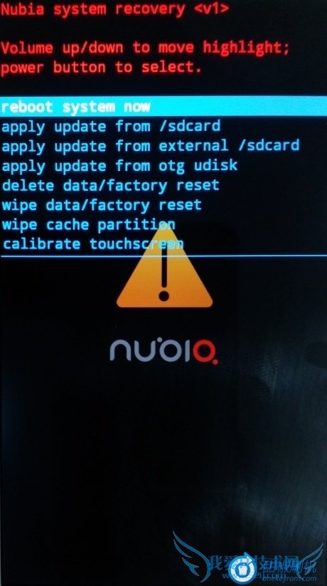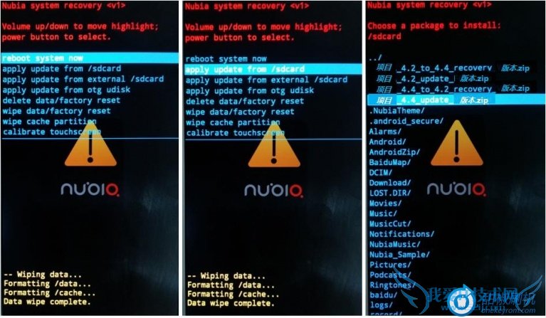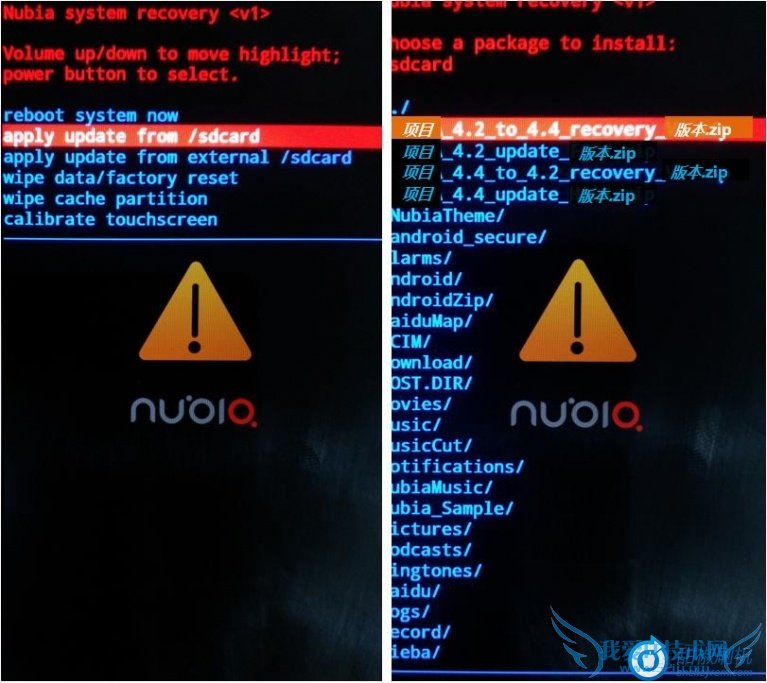 2. 接着通过applyupdate from sdcard菜单,选择NX403A_4.4_to_4.2_recovery_xxx.zip文件进行升级;