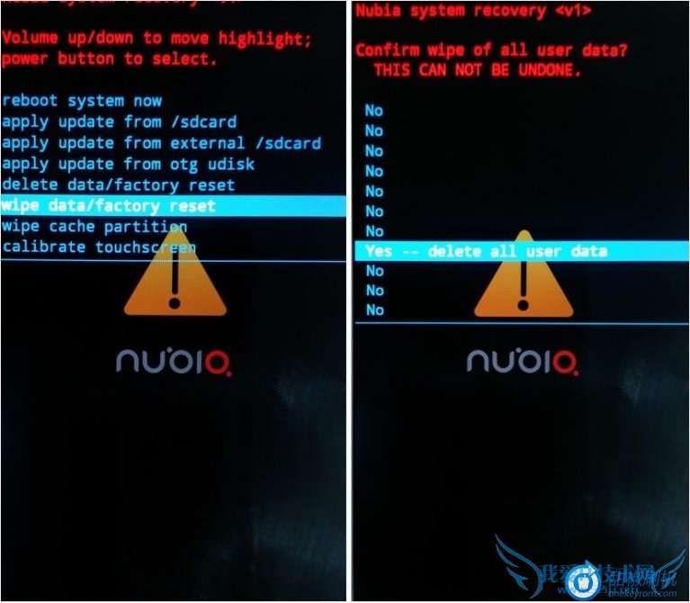5. 请选择wipedate/factory reset 进行数据擦除;