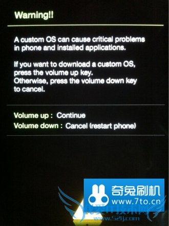 取出手机三星GALAXY GRAND 2(G7109/电信版)电池几秒钟,再装入,同时按住 音量下键+HOME键+电源键,出现感叹号界面后再按一下 音量上键,确认进入,再插入数据线连接电脑。