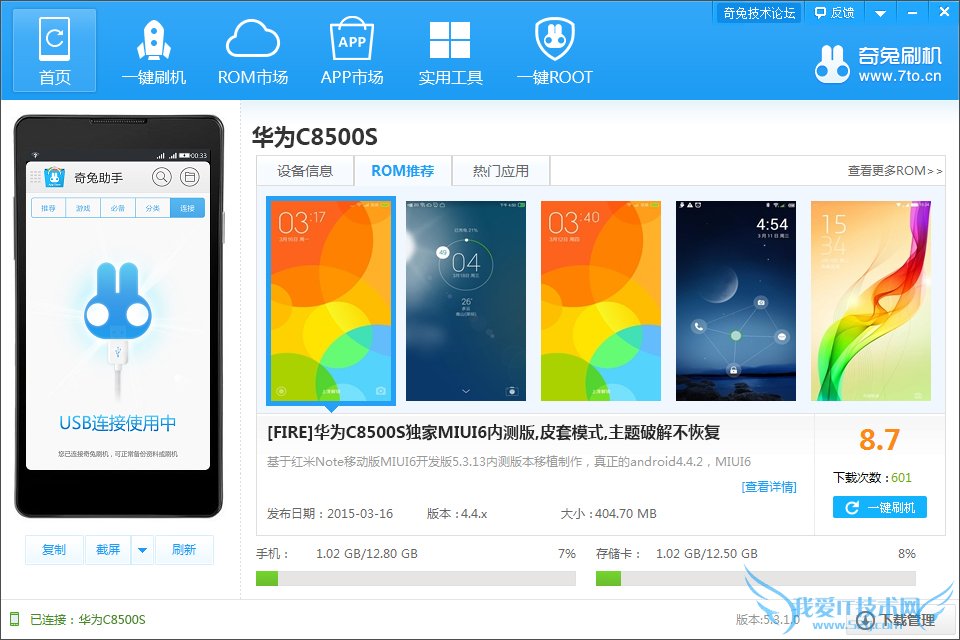 看到这里,你是不是觉得刷机很简单呢,体验更多的华为C8500S刷机ROM包,用户可进入奇兔刷机ROM市场下载,还不快来体验刷入各种手机OS的乐趣,希望这篇华为C8500S刷机教程对大家有所帮助。
