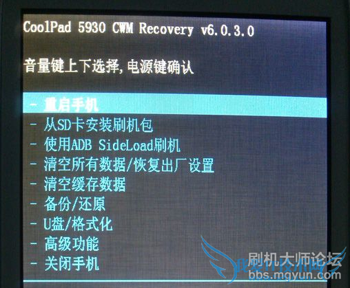 酷派5930电信版第三方Recovery仅用于系统备份还原、刷第三方ROM,不支持官方OTA更新,如需要OTA更新请恢复为官方Recovery。