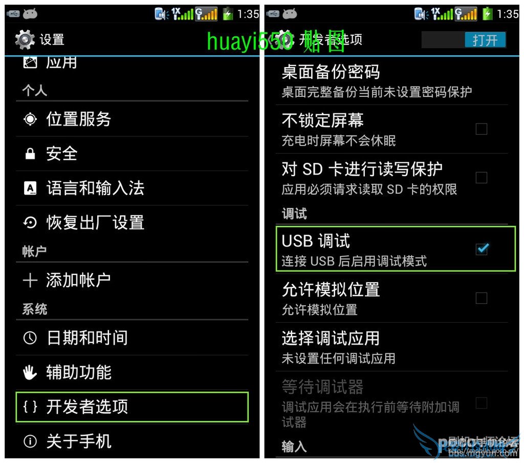 1、启用酷派5930电信版手机 USB 调试模式:手机设置菜单 选择“开发者选项” 请勾选并确认“USB调试”;