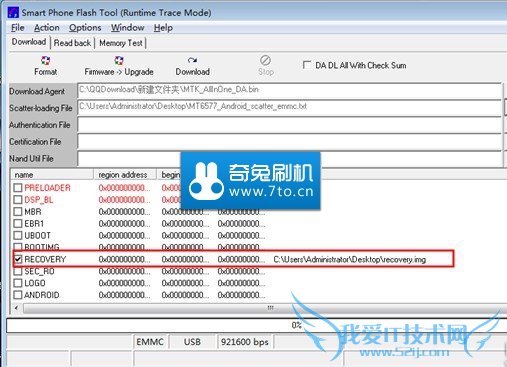 5.选择好了后。刷机工具会自动勾选下面的recvoery项,其实刷recovery只勾选这一项就可以了!如下图所示: