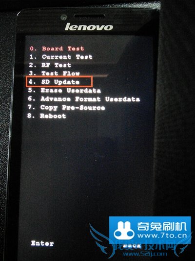 2.用音量键选择升级界面中的第四项 “sd update”,点Enter进入