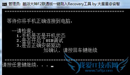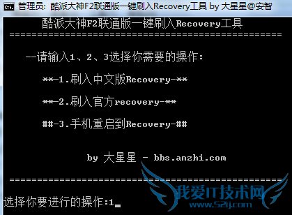 3.然后双击运行【Coolpad_8675_W00_Recovery.exe】,然后再根据界面上输入【**-1.刷入中文版Recovery-**】回车键继续,然后根据提示刷入即可,如下图;