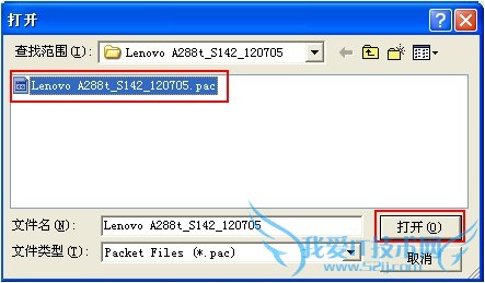 2、点击工具左侧第一个按钮,选择pac文件,在您解压的A218t_S222_131104线刷包找到并打开Lenovo A218t_S222_131104.pac文件,如下所示: