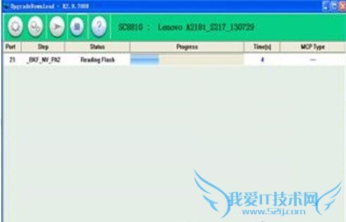 3、点击工具左侧第三个按钮,然后将手机重装一下电池,不要开机,然后按住 音量下键的同时插入数据线,就开始刷机了,出现了进度条,如下所示: