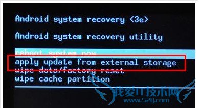 6:然后按音量上下键移动,移动至【apply update from external storage 】,按开机键进行确认