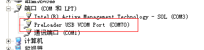 2)刷出如下端口(PreLoader),并记录端口号。