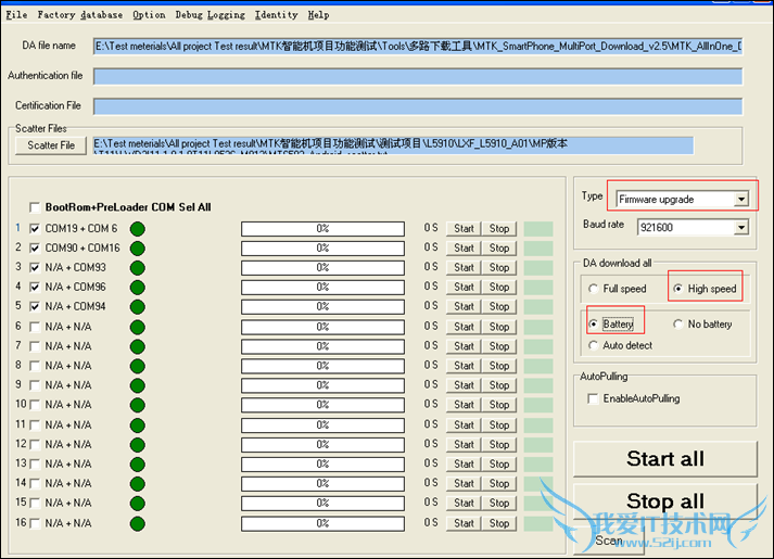 4.设置升级方式:将Type设置为Firmwareupgrade; 下载speed建议选择High speed方式;选择Battery下载方式,如下图: