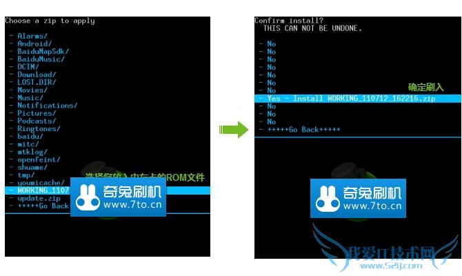 - 选择您所放入内存卡的ROM文件 - Yes - Install 确定刷入