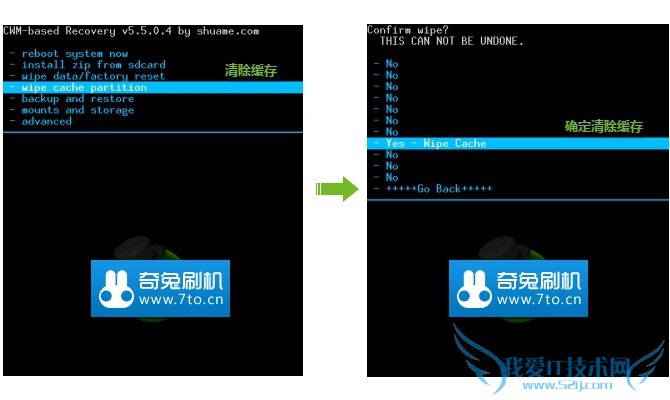 - wipe cache partition 清除缓存 - Yes - Wipe Cache 确定清除缓存