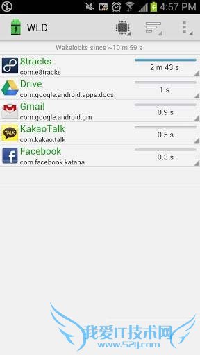 Wakelock Detector可以显示手机休眠和唤醒的时间的对比,以及什么App调用Wakelock次数最多(需要root权限)。当你觉得手机实在热得受不了,一看某个App令系统的唤醒时间比休眠时间还多,就能明白问题所在了。
